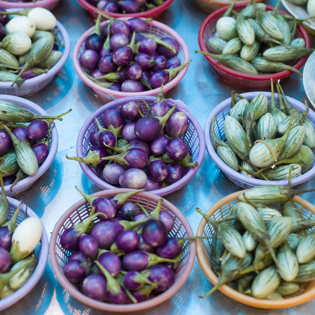 Jako że Tajlandia bakłażanem stoi – na każdym większym bazarze można z łatwością kupić co najmniej trzy, a często i pięc, odmian tego warzywa, postanowiłem zrealizować mały projekt wizualnej dokumentacji tajskich bakłażanów: bakłażan project. Nie mylić z manhattan project, bo to coś zupełnie innego.
