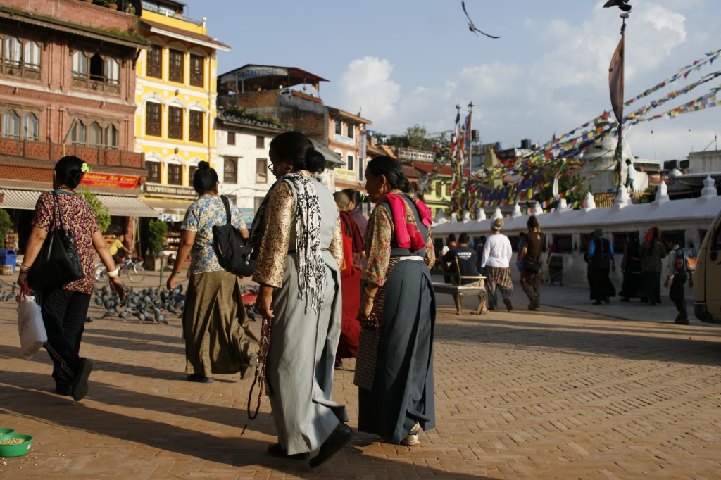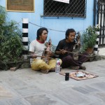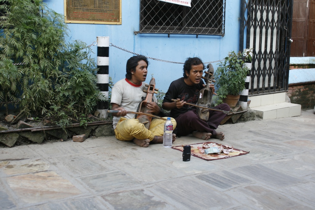 Na tym kończę część formalną dnia, potem szwędam się po okolicy, robię zdjęcia, wpadam do jednej ze swoich ulubionych knajp na zupę wodorostowo-jajeczną i kurczaka w orzeszkach ziemnych z papryczkami. Boudha wydaje się rozwijać, jest więcej knajp, nowe sklepy i absolutne masy stołów z lampkami maślanymi. Te ostatnie robią niezwykłe wrażenie po zmroku. Po drodze trafiam na dwóch ulicznych muzyków, którzy – bardzo pozytywnie – zaskakują mnie poziomem swojego grania. Wrzucam do czapki (de facto nie ma czapki, jest plastikowa płachta, rozpostarta na chodniku) 50 rupii i pytam, pokazując na mikrofon, czy mogę nagrać. Panowie muzycy godzą się bez wahania. W ten sposób powstaje moje pierwsze nagranie terenowe, jeśli nie liczyć koncertów w PardonToTu. Później będę żałował, że nagrałem tylko kilka minut.