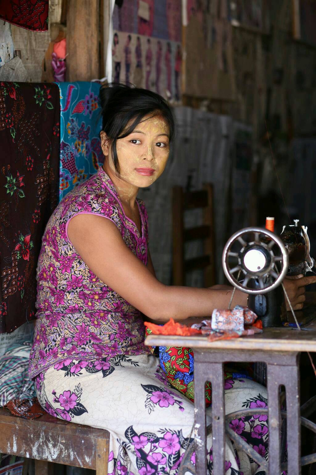 Kierowca po drodze zatrzymał się na ponad godzinne modły w wiosce Boli (Boli Para), a ja dzięki temu miałem okazję fotografować tubylców. Na zdjęciu kobieta z ludu Marma przy pracy. Twarz pomalowaną ma pastą thanaka, niezwykle popularną w Birmie.