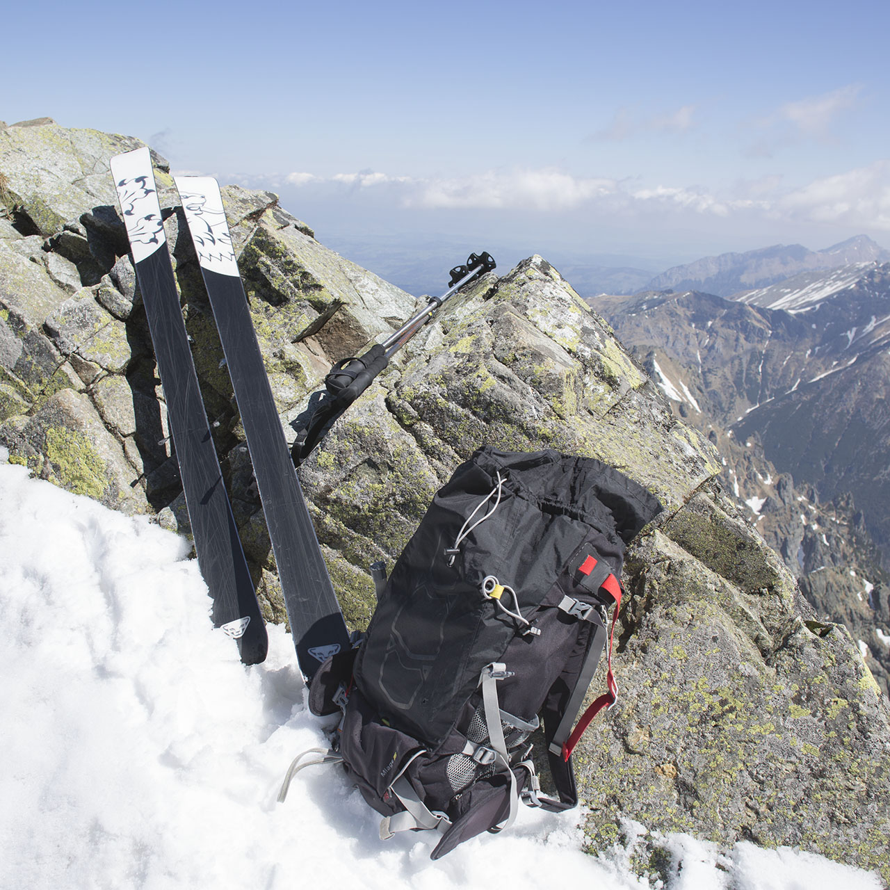Następnego dnia wstaję o barbarzyńskiej godzinie – 0530 i godzinę później, z nartami na grzbiecie, idę nad Czarny Staw, gdzie zaczynają się śniegi. Spacer po nadmorskoocznych kamieniach jest nieprzyjemny, nawet w tak wygodnych butach jak TLT5 Dynafita, podejście na próg Czarnego również.