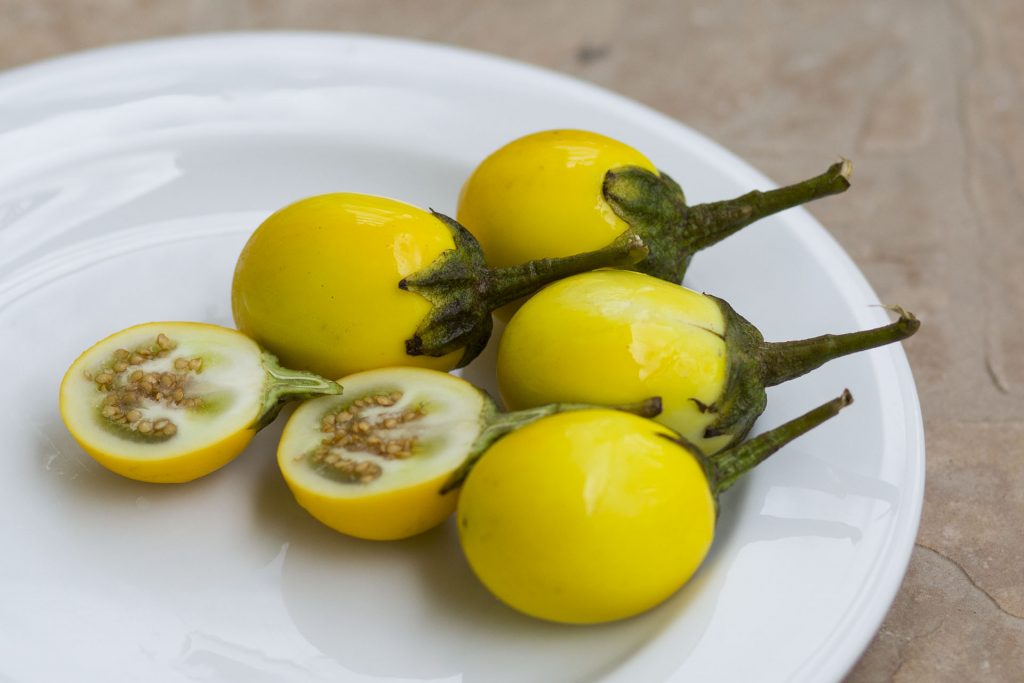 Pigwa nie kwalifikuje się do projektu, natomiast poniżej zdjęcia żółtych tajskich bakłażanów – podobnie jak pigwa są nieco kwaśne i pewnie stąd jednakowa lokalizacja na bazarze.