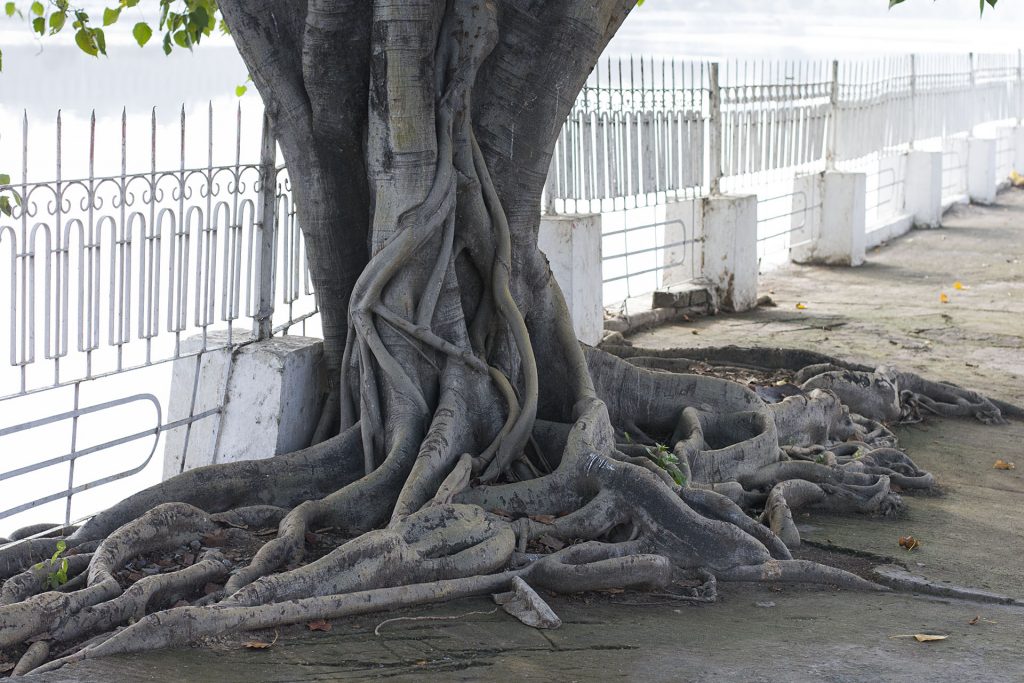 The Sanskrit word skandha refers to the trunk of a tree, and I think the trunk of a banyan, or Ficus indica, might have been what the Buddha had in mind when he started using this term. The banyan is one of the world’s most unusual trees. It begins as an aerial root that descends from a seed dropped by a bird in the canopy of another tree, such as a palm. After the seed sprouts, its root descends until it reaches the ground, and once established, it strangles its host. As it continues to grow, its branches put forth their own aerial roots, and these, in turn, form additional trunks. In the course of a hundred years, the original trunk becomes impossible to distinguish among the grove of roots that develop into trunks. In Sri Lanka, there is a banyan that has more than 350 major trunks and 3,ooo minor ones and that forms its own forest. Thus, the banyan is called “the tree that walks.”