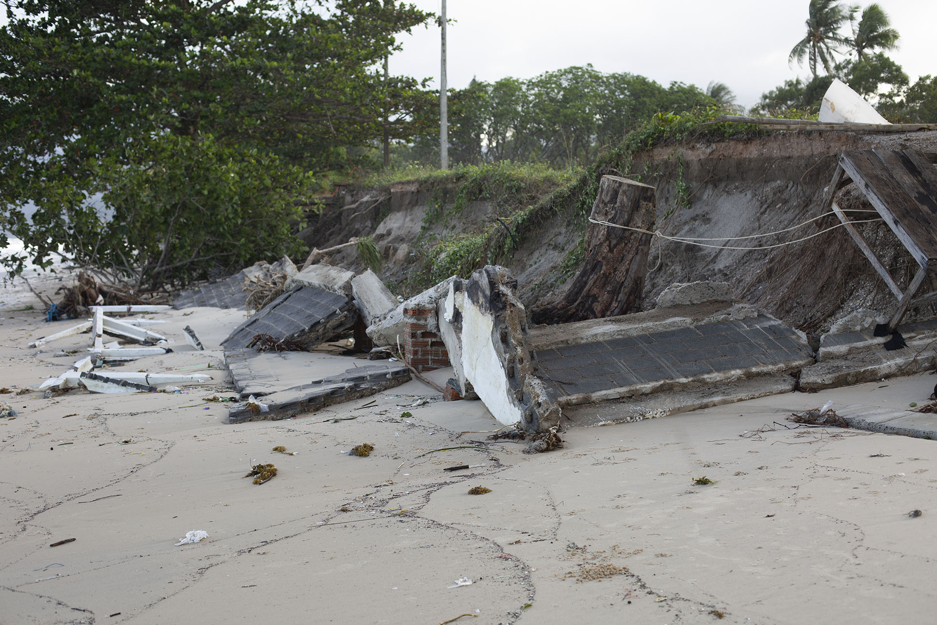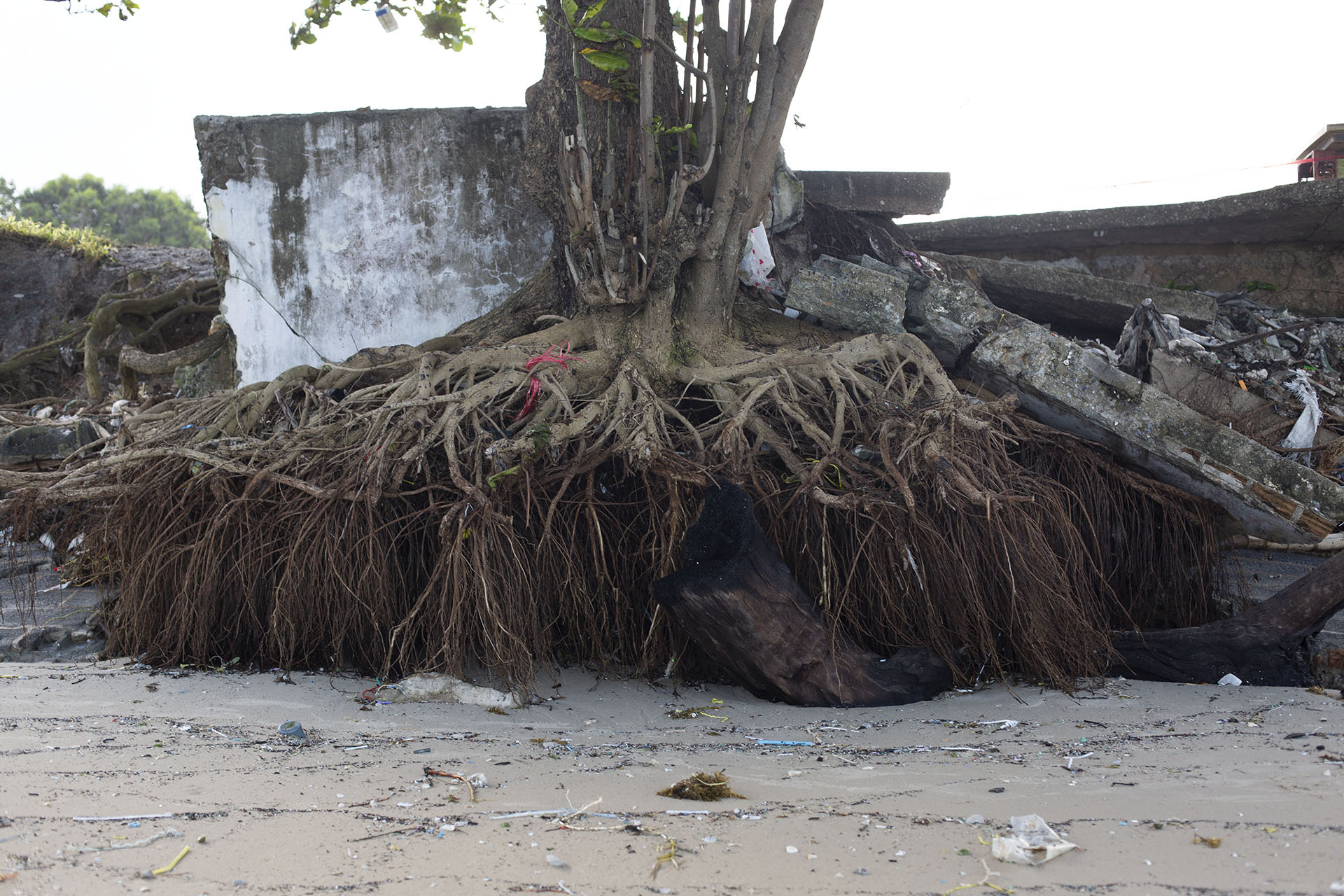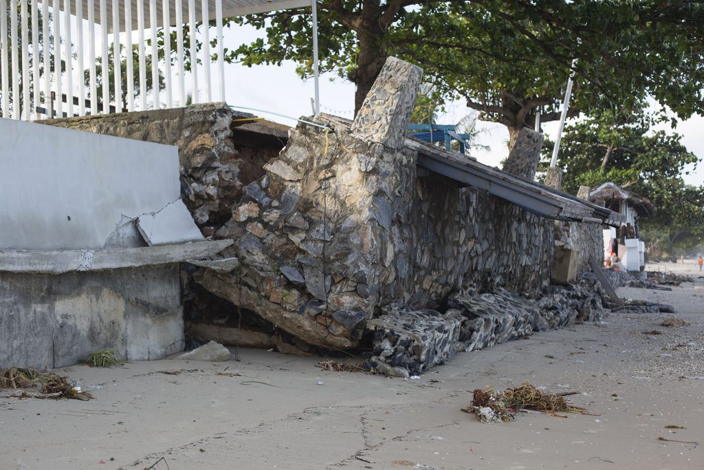 Jak widać, morze zabrało trochę piasku i podmyło wzmocnione betonem (albo betonowym śmieciem) struktury. Zawaliło się kilka tzw. sea walls – głownie dlatego, że były za płytko wpuszczone w ziemię. Przewróciło się kilka drzew, spod którym woda wymyła piach. Drzewa o bardziej mangrowcowej strukturze korzeni poradziły sobie lepiej.