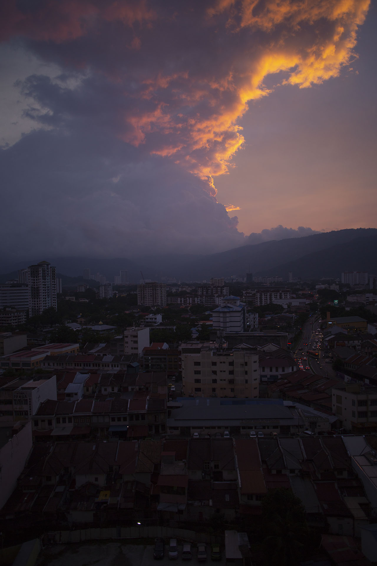 U nas monsun na razie skromny – co kilka dni potężny deszcz (taki wielogodzinny), nad wzgórzami gromadzą się gigantyczne cumulonimbusy i można obserwować jak ściana deszczu (która wygląda jak bardzo gęsta mgła) powoli przesuwa się na wschód, w stronę stałego lądu, po drodze zahaczając o mój balkon.