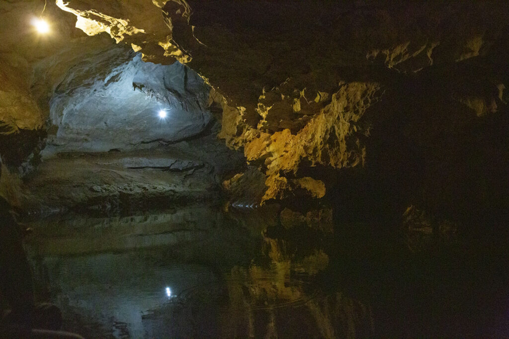 No dobrze, ale wyruszyłem z Thakhek, dojechałem do Thalang, a po drodze zahaczyłem o jaskinię Tham Nang Aen. Jaskinia sama w sobie jak to jaskinie, ale przeprawa łodzią przez podziemne jezioro niezwykle fajna. Jako że poza mną nie było nikogo innego, wynająłem całą łodź, przewodnik siedział na dziobie jak mój osobisty Charon i tak płynęliśmy. Doświadczenie dla mnie głównie na płaszczyźnie dzwiękowej – w jaskini panowała absolutna cisza, więc odgłosy wiosła, sunącej łodzi, kapiącej wody słyszało się niesamowicie wyraźnie. Tak naprawdę, to zamiast łazić po tej dziurze, mógłbym usiąść gdzieś z boku i słuchać kropel przez resztę dnia.