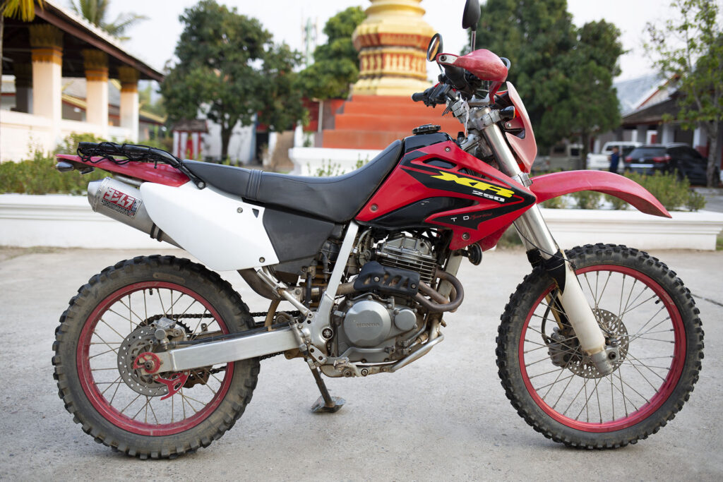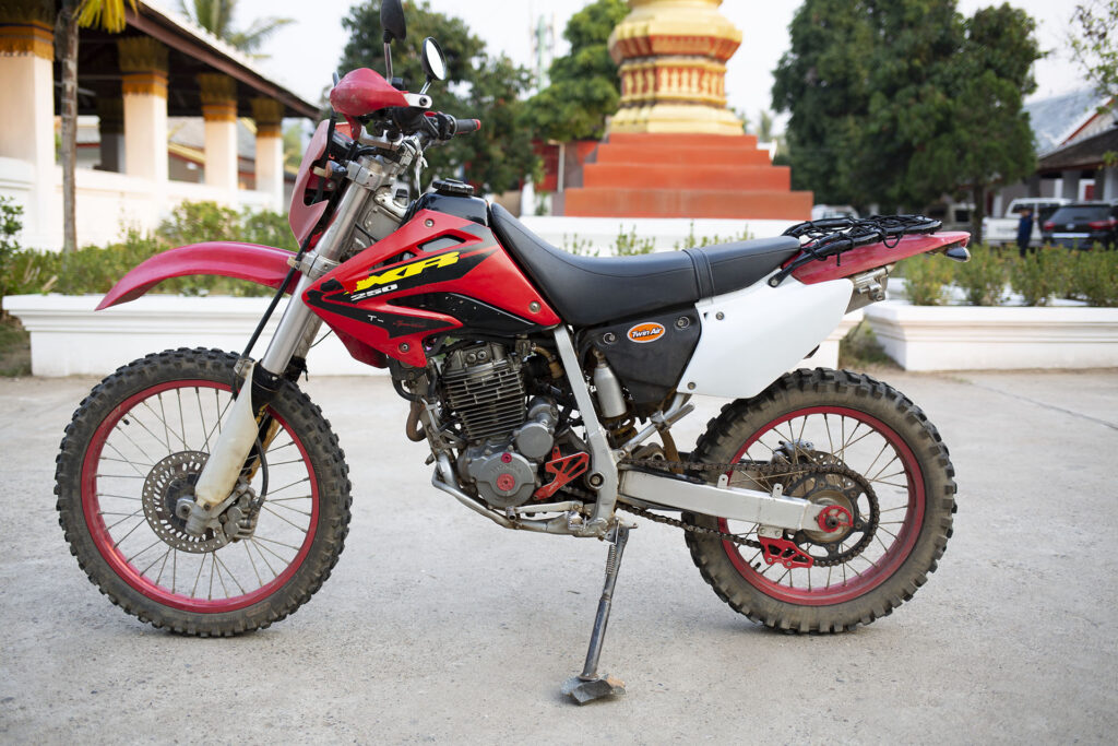 Po dokładnie roku zdecydowałem się sprzedać XRkę. Było fajnie, nauczyłem się dużo o motorach, ale czas na coś bardziej nowoczesnego. I tak, XRka ma już nowy dom na południu Laosu, pod Pakse, na plantacji kawy. Bardzo romantyczne. Z zabawnych historii – autobus, którym motor jechał do Pakse, zepsuł się w połowie drogi. Kolejny zepsuł się w Savannakhet. Motor wrócił do Vientianu i dopiero czwartego dnia dotarł na miejsce. Nowy właściciel znosił te przeciwności losu ze stoickim spokojem i cierpliwie czekał na motor. Wielki plus dla niego.