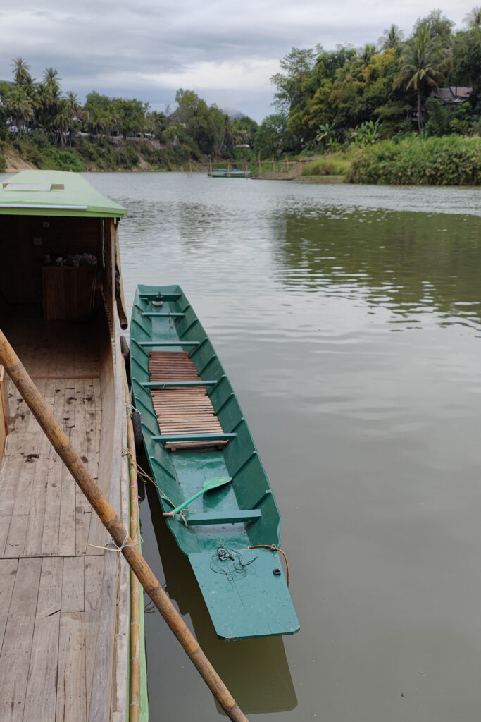 Primo aktualne zdjęcie mojej łodzi – świeżo po malowaniu, z wiosłem pod kolor. Taki kolor łodzi w Laosie określany jest jako kolor dojrzałych liści bananowca. Z kolei kolor wiosła to młody liść bananowca.